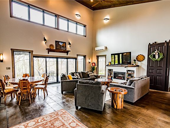 This extraordinary Bryan Construction custom-built home is more than a residence — it’s a work of art. Designed with intention and crafted with creativity, every detail tells a story. Striking architectural lines, hand-selected materials, and one-of-a-kind finishes come together to create a space that inspires and delights at every turn. The open-concept layout flows effortlessly, showcasing natural light, soaring ceilings, and artful touches that blur the line between home and gallery. Thoughtful craftsmanship is evident throughout this one level home. Step into your large primary suite with custom epoxy flooring, walk-through closet, beautiful bathroom with walk-in shower, and seating area with gorgeous views from every window. Two generously sized bedrooms each with it's own patio. A Governor's drive loops a walnut grove and enjoy the stamped concrete deck with sun sails. Perfect for those who appreciate design, this home offers not just comfort, but conversation on 7 private acres.