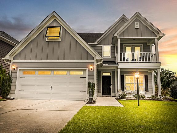 Welcome to this beautiful Charleston-style home located in the sought-after Nelliefield Plantation neighborhood! Situated on a corner lot of a double cul-de-sac street, this 3-bedroom, 2.5-bathroom home boasts a welcoming front porch and a second-floor balcony, perfect for enjoying the scenic surroundings. The home is well-landscaped and features Bahama hurricane shutters on the second story. As you enter, you'll be greeted by rich wood flooring that flows throughout the entire first floor. Off the entryway, there's a spacious formal dining room, perfect for hosting gatherings. The open-concept great room seamlessly connects to the eat-in kitchen, which is equipped with granite countertops, a gas range, stainless steel appliances, 42'' cabinetry, and a kitchen island.The large pantry provides ample storage, and a charming "smurf door" offers extra under-stair storage off the garage entry. Upstairs, the owner's suite is a true retreat, located at the rear of the home for added privacy. This oversized suite features an additional sitting area for unwinding and a fully renovated bathroom with new tiled floors, a luxurious tiled shower, and a large walk-in closet. The additional bedrooms are generously sized, each with ceiling fans and walk-in closets, with one bedroom having access to the second-floor balcony. Enjoy outdoor living on the large screened-in porch, complete with shades and a ceiling fan, perfect for warm Charleston evenings. There's also an additional patio off the porch, ideal for entertaining. Nelliefield Plantation offers a neighborhood pool, park, and pavilion, as well as a convenient golf cart path to the nearby Phillip Simmons schools. Don't miss the opportunity to own this charming home in a wonderful community!
