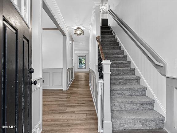 Welcome to Evans Crossing, a gated community in Maysville and only a short drive to Jacksonville and Hubert. This home boasts TWO primary suites, with one being on the first floor and the other on the second floor. The wrap around front porch offers a gentle welcoming to the home, where once inside you are greeted with a foyer and formal dining room to your left. Continue into the living room with views out the windows of the ample sized fenced in back yard, and a half bath for nice convenience. The Kitchen has a bar area that overflows into the living room along with granite countertops and space for a breakfast nook or small table. The first primary suite is just off the living room with a walk in shower, a tub, and walk in closet. Upstairs is another 3 bedrooms, with one being the second primary suite. The other two bedrooms share a full sized bathroom and the laundry room is also upstairs. The backyard just got a new 24x20 concrete patio off the backdoor making ample space for any outdoor furniture. The fenced in backyard does not stretch the entirety of the backyard with approximately 0.4 acres that goes into the woods through a gate in the fence and a nice trail.