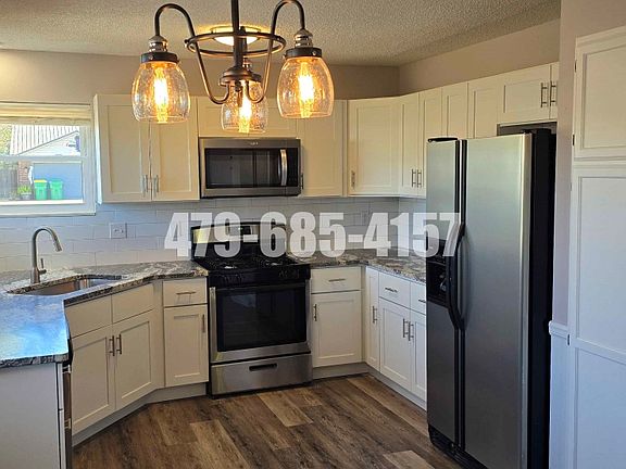 3 bedroom 2 bath, newly remodeled home, new kitchen, fridge included, with updated fixtures, paint, and flooring. 2 car garage. Large fenced yard. Great Centerton location, 1 year lease required. Agent owned.