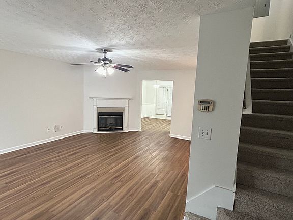 Welcome to this great location, 3 bed 2.5 bath townhome! Downstairs you will find a very spacious living room with dining room and kitchen attached. Step on the back patio with a peaceful view and a lot of space.