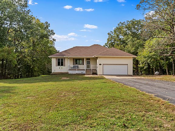 Escape to your own country oasis tucked away on a quiet dead-end street, offering nearly 7 acres of peace and privacy in the heart of the Ozarks. This spacious home features over 3,000 sq. ft. of living space with a walkout basement, 4 bedrooms, 3 bathrooms, and 2 inviting living areas -- perfect for comfortable family living and entertaining.Outside, you'll find a 25x40 insulated and heated shop, an additional outbuilding currently used as a poultry coop, and some fenced land with a water-holding pond ready for livestock or hobby farming.Step inside to discover high-end custom cabinetry, hardwood floors, crown molding, and soaring ceilings throughout. The chef-inspired kitchen is equipped with every luxury: a prep sink, full-size sink, propane range, double ovens, granite countertops, and pull-out cabinetry for ultimate functionality.The primary suite is a true retreat with a spa-like ensuite featuring a walk-in shower and a spacious walk-in closet. The finished basement is a showstopper -- complete with built-in bookshelves, a cozy pellet stove, an oversized bathroom with a second laundry area hidden behind cabinetry, and two generous bedrooms.Both the basement and dining room open to a stunning outdoor entertaining space, where you can relax and take in sweeping country views -- the perfect backdrop for gatherings, sunsets, and serene mornings.This property blends modern comfort with country living -- a rare find that truly has it all.