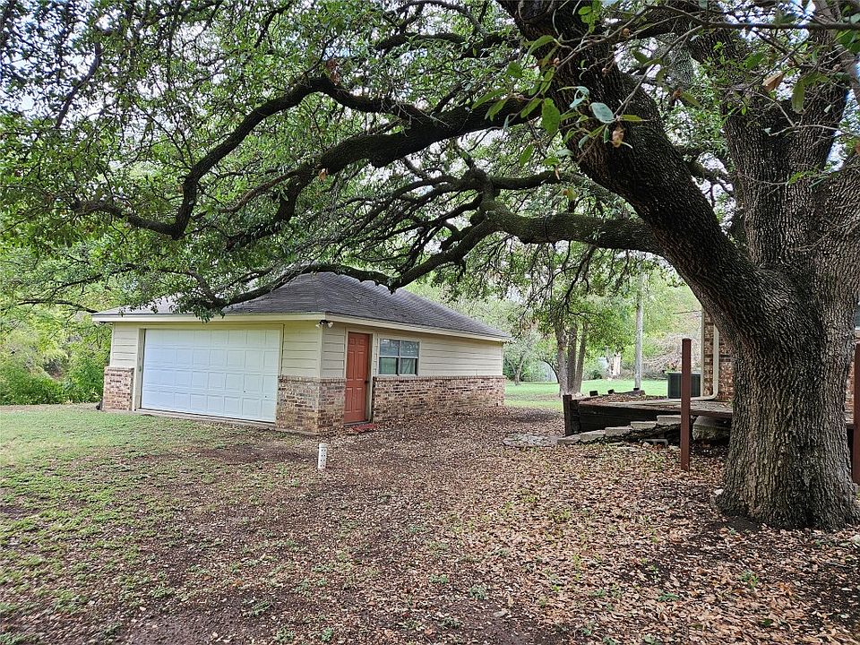 Located just outside the city limits of Whitney, TX, with no restrictions, lower taxes, and home of the famous Lake Whitney. This property sits on 1.45 acres, has a seasonal pond located at the back of the property, a side fenced area for your animals, and a ton of space to add that huge garden you've always wanted. Detached Four-car garage shop located at the back of the property for your projects, lake toys or could always be converted into additional living space or office. 3 LARGE bedrooms, 2 baths, living area has built-ins and a nice fireplace, dining area, and LARGE eat-in kitchen. Plenty of outdoor space to enjoy barbequing with friends and family, have large gatherings, animals and kids to romp and stomp. Large deck and a beautiful massive Oak tree. Just minutes to several parks and boat ramps so bring your lake toys and animals. Interior could use a fresh coat of paint so come make this spacious home all yours! Qualifies for USDA 100% Financing