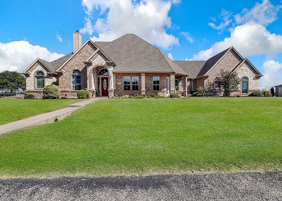 Fly-in luxury living at its finest! Located in Aledo ISD within the prestigious Bourland Field Estates, this custom 3-bedroom, 3.5-bath home blends aviation lifestyle with Texas elegance. The gourmet kitchen features granite countertops, stainless steel appliances, a walk-in pantry, and a formal dining room perfect for entertaining. Each bedroom offers its own ensuite bath, plus an office for remote work. Enjoy the glass-enclosed sunroom and full outdoor kitchen overlooking your backyard and runway