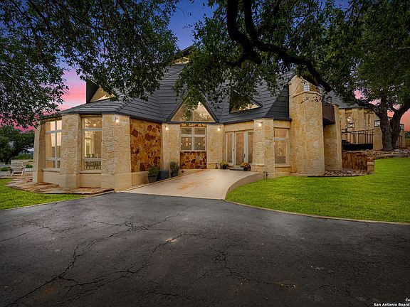 This luxurious, custom home features a geodesic design combined with a hill country aesthetic creating a one-of-a-kind masterpiece with privacy and unparalleled views! The plan behind the geodesic design was to take full advantage of the natural lighting by using a pin wheel skylight and multiple dormer windows. When the sun goes down you, have stunning views of the starlite sky! The home is situated on 25.29 private, sprawling acres with over 1,500 feet of Guadalupe River Frontage! The property has dual private automatic gates and a meandering driveway that leads you to the main residence, pool and gardening areas, the shop and down to the river! Being nestled on an elevated section of River Mountain Ranch allows you to live an extraordinary hill country lifestyle. The vast and unique floor plan is special! Throughout every space, the different textures, tones, dormers, windows, fixtures and soaring ceilings all cohesively blend to create your very own art museum. Meanwhile, the warmth and comfort of the spaces create a cozy feeling that will make you feel right at home! Walls of floor to ceiling and wraparound around Pella windows and doors allow you to be one with nature! The views can be appreciated throughout the entirety of the home. The entertaining enthusiast will appreciate the formal and informal living areas. The focal point is the floor to ceiling telescoping style fireplace that separates the great room and a secondary living space! There is a serving bar conveniently positioned on each side for entertaining. One containing a wet bar and the other a wine and beverage cooler - ideal for all of your mixology and serving needs. For the culinarian - the gourmet kitchen will not disappoint! Features include upscale Viking appliances, a 6 burner gas range, double ovens and side-by-side sub-zero refrigerator and freezer! There is a plethora of custom cabinetry and workspace. The wraparound sitting bar has seating for up to 8 and offers a relaxed eating space. For more refined dining experiences and holiday gatherings, the separate dining room offers an abundance of space and a buffet style serving area! The primary suite is situated on the main level and is complete with a spa-infused bath, double vanity, soaking tub, a seamless glass walk-in shower and dual custom wardrobe rooms. Completing the main level are the private study with an abundance of built-in bookshelves, a game room or flex room, and utility room with an adjoining storage room. A striking suspended staircase leads you to the grand foyer with a double door entry - which exudes an atmosphere of an art gallery. This level also hosts two spacious guest bedrooms with en-suite baths, a window desk area and a private balcony with more exceptional views! For the in-laws and overnight night guests, there is a separate, attached wing which features its own entrance with an open patio, as well as an entrance into the home! This wing provides the ultimate experience and is complete with a living area, kitchenette, bedroom suite, full bath, a flex room, which could serve as a second bedroom and stackable washer and dryer hookups. The outdoor spaces were designed for year-round living and entertaining. From evenings in front of the fire to lounging in the sparkling pool or spa, boredom is not an option! The gardening enthusiast will enjoy the raised bed garden area and the greenhouse with electricity, water and fan system for planting. Sprawling lawns provide ample space for leisure and play! The Morton barn features an automatic door and is ideal for housing all of your outdoor equipment, boat or up to nine cars. The most extraordinary thing about 117 Clear Springs Drive is the utmost privacy and accessible river access. No more having to plan river trips away when you have the river running through your property. A natural limestone sitting area is the perfect spot for relaxing with your feet in the water. The river is also a great spot for visiting with family and