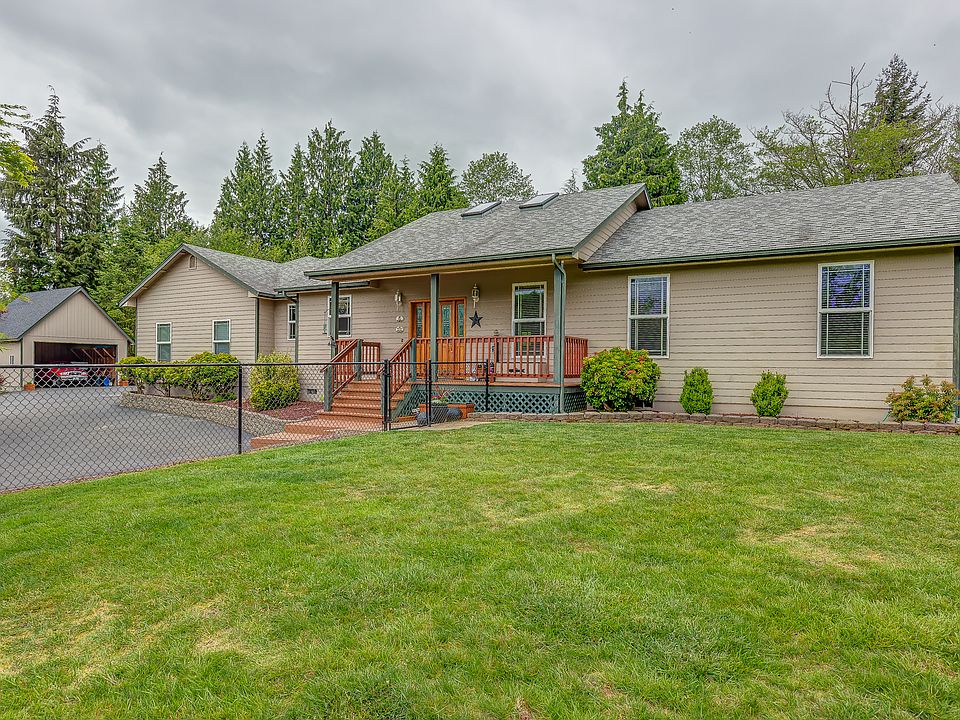 Truly a Rare find! Custom-built home, privately located off Stella Rd. with 4+ acres, yet close to all community amenities, Tastefully designed floor plan w/ 5 bedrooms, 2.5 bathrooms, wood stove, hardwoods, forced air/heat pump, gourmet kitchen/eating and solid oak cabinets plus a 2 car garage. The property features a 28X20 shop, paved driveway, large fenced yard, fruit trees and has an abundance of trees that make it very private. 5 additional acres could be added or negotiated w/purchase.