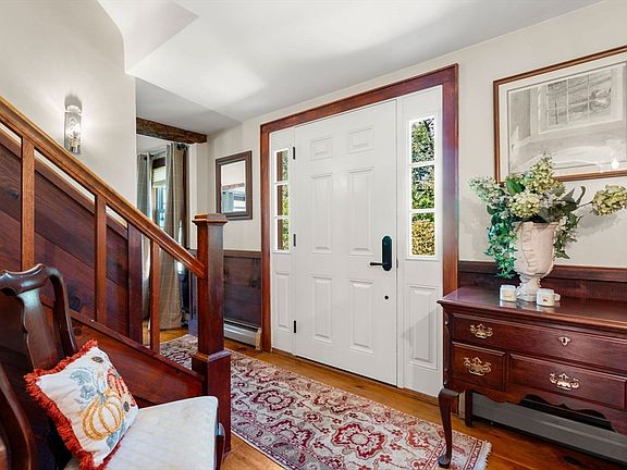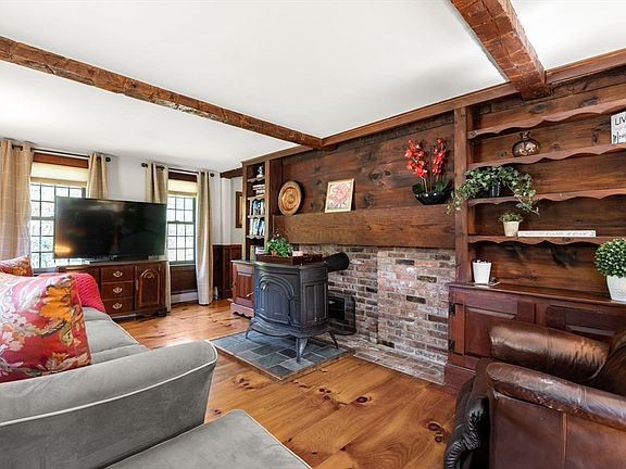 One-of-a-kind Royal Barry Wills antique reproduction offers charm and character for those seeking more than a cookie-cutter home. From the shingled exterior to pine and hardwood floors, nooks and crannies, and multiple fireplaces, every detail adds to its timeless appeal. The kitchen has been thoughtfully upgraded in a period-appropriate way, while the barrel-ceilinged passage and dining room with picture window and open fireplace invite gatherings. A first-floor bedroom and bath provide flexibility, complemented by a heated sunroom (propane FP) for year-round enjoyment. The finished basement with electric FP, newer heating system, and garage adds comfort and convenience. Set on a lovely corner lot across from the golf course, this home blends warmth, history, and functionality in a truly special package. This special home is available for sale for the first time in decades!