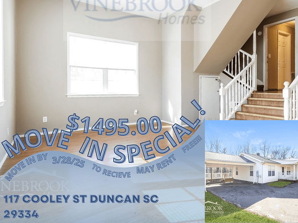Fall in love with this deal! Move in by 3/28/2025 and get May's rent FREE! This beautiful 3-bedroom, 2-bath home features freshly painted walls, new flooring, and appliances! Enjoy an abundance of natural light streaming through the large windows and ample storage for all your belongings. The spacious living area is bathed in sunlight, creating a warm and inviting atmosphere. This home also includes a dedicated laundry area with washer and dryer hookups. Step into the backyard to discover your own outdoor oasis, while the front sidewalk welcomes you into your cozy abode. The modern exterior complements the warm and inviting interior. With a large outdoor space perfect for entertaining, this home is an excellent opportunity in a sought-after neighborhoodconveniently located near schools, shopping, restaurants, and downtown. 117 Cooley St won't stay on the market for long at this price! Visit our Vinebrook Homes website to submit your application. Once approved, let's schedule a tour! Homes must be occupied within 10 business days of approval. Quoted security deposit reflects base amount. Security deposit subject to change based on application screening results.