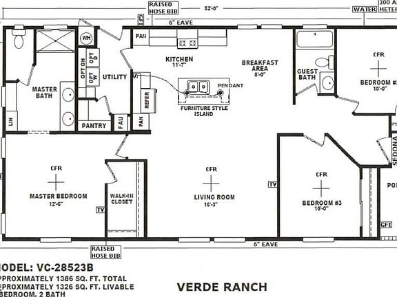 - Total interior livable area: 1,326 sqft