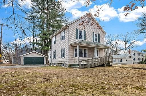 Welcome Home! Looking for a spacious colonial minutes to major routes, public transportation (bus rt. 33 & Endicott commuter rail stop nearby), conversation area, & Boston? Look no further! Step into this home through the welcoming foyer where you can't help but notice the beautiful woodwork and beaming natural light. The first floor features a large kitchen with a breakfast bar, a bright sunroom, large dining room that flows through to a large living room, and a half bath. The second floor features 3 bedrooms, a full bath, and plenty of closet space. This home also features a large two car detached garage, an oversized deck, and a large corner lot! Bring your design ideas and make this home yours! First showings will be this Sunday at the Open House from 12:30 p.m. - 2:00 p.m.
