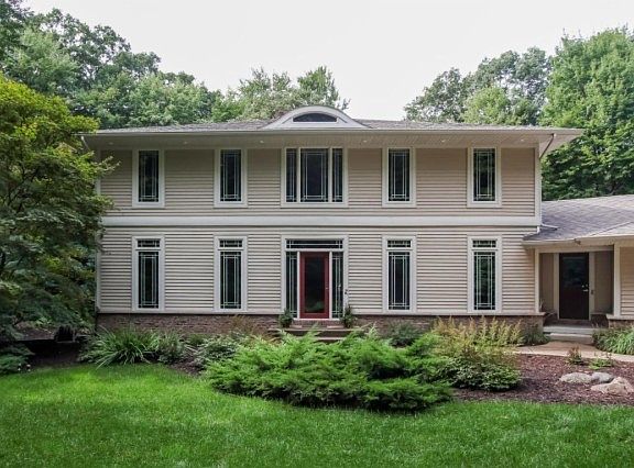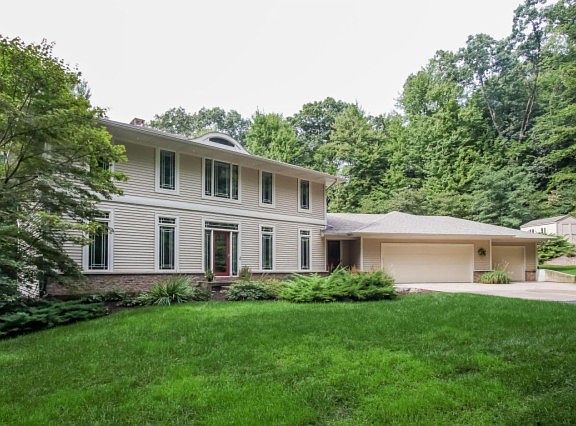 Quality Tim Verstrate built home for the original owners on 1.75 private wooded acres in Ada Township, Forest Hills Eastern Schools. Over 4000 square feet of custom built finished living space. Frank Lloyd right inspired two sided brick fireplace separates the living room from the kitchen eating area. Kitchen has custom natural cherry cabinets and high end stainless appliances. Many recent updates including quartz kitchen counters, subway tile backsplash, refinished maple hardwood flooring, new carpet, fresh paint, updated bath and more! 4 bedrooms up with 2 full baths. Walkout lower level with in-floor heating. 5th bedroom/office with two sided stone fireplace and full bath. Oversized three car garage and tons of storage. Huge deck with pool. Schedule your showing today!