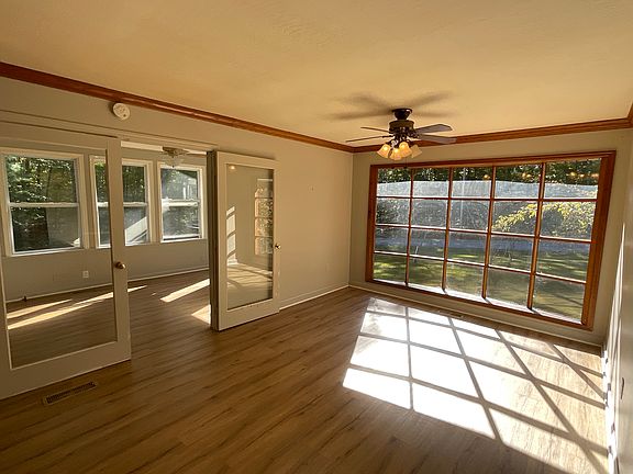 Open floor planLarge laundryNewer stainless steel applianceSunroom lined with windowsLevel quiet corner lotCovered porch and deck