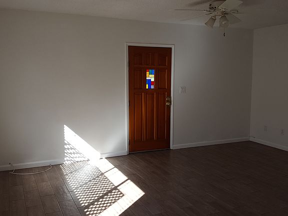 Duplex back unit with 2 bedrooms, 1 bathroom. Newer ceramic tile throughout. Small fenced yard with covered carport. Kitchen is equipped with a gas stove, dishwasher and has hooks ups for washer and dryer if Tenant wants to bring their own appliances. Landlord pays water and trash, Tenant pays all other utilities and services. An application is required for any individual over the age of 18 years. There is a $35.00 application fee per adult. The security deposit is typical equal to one month's rent with fair income and credit. Sorry No Section 8. The owner would really would prefer no pets.