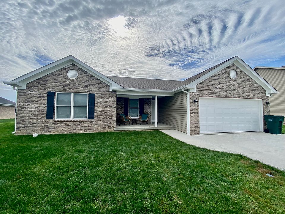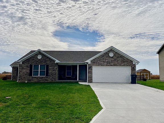 Absolutely stunning home sits in a charming neighborhood within walking distance to the local elementary school and the town businesses. Built in 2021, this ALL ELECTRIC 1800 sq ft home features 3+ bedrooms, 2 full bathrooms, an open floor plan Kitchen, Dining and Living Room, Sun Room (possible 4th Bed), Laundry Room and 2-Car attached Garage. The beautifully designed Kitchen showcases white soft-close cabinets, black s/s appliances, a breakfast bar/island, a deep-basin farm sink and a Pantry. Located just steps away is the Dining Room with views of the fenced-in back yard. The French Doors lead to the Sun Room, which could serve many purposes, including a 4th Bedroom or Office. In the Primary Suite, you'll find an extra-large walk-in closet, a spacious Bath with large vanity, a Shower/Tub combo, and views of the gorgeous backyard with its picturesque country setting. Beds 2 & 3 are located on the other side of the home and feature large closets. A 2nd Full Bath, located in the hallway by Beds 2 & 3, has a large vanity and Shower/Tub combo. The Laundry Room is located just outside the Primary Bedroom Suite, and houses the furnace, water softener, and water heater discreetly behind the sliding doors of the closet. A finished 2-Car attached Garage is where you'll find the electrical panel, attic access, and the crawl space access point. The back yard is one of the best parts of this property! Enjoy the breathtaking Indiana sunsets on the extra-large and wide-open patio (wired for a hot tub) while playing, relaxing or entertaining your friends or family. This home is just waiting for you to move in and make it yours!