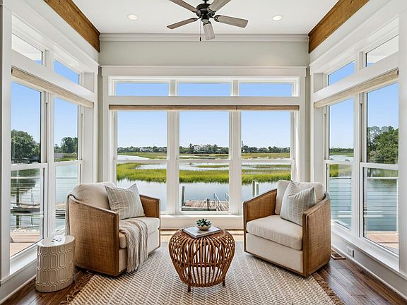 Three-stop elevatorCozy fireplaceBoat liftPrivate boat docksPatio areaWater viewsPanoramic marshfront views