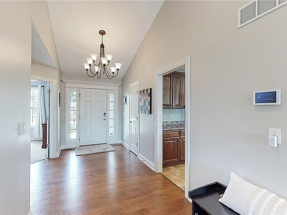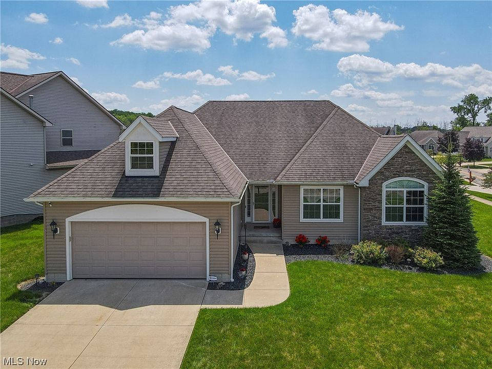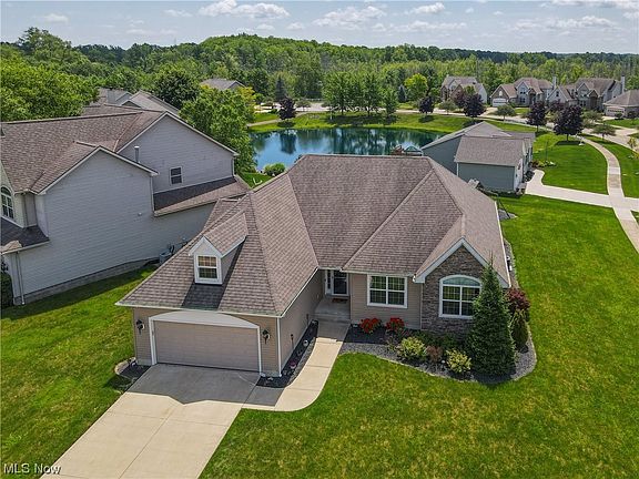 Incredible opportunity to enjoy one floor living in this beautiful custom ranch home built in 2014 in the much sought after Fox Pointe community! Stunning chef's kitchen featuring large gourmet island, maple cabinetry with granite counters, stainless steel appliances and lovely breakfast area! Amazing open floor plan to entertain family and friends with the spacious eat-in kitchen that opens to the beautiful vaulted ceiling family room featuring a gas burning tiled fireplace with easy access to the deck and patio ... enjoy nature at its best with pond views!. The primary ensuite showcases large closet room, dual sink vanity with granite counter, soaking tub and walk-in shower. Amazing finished lower level that features a great recreation room and is perfect for movie night, also includes a full bath and additional bonus room for guests or office area. Call for an appointment today!