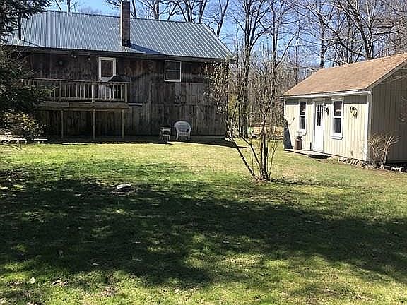 This lovely home sits on 2 acres & lends plenty of space both indoors & out! Offering many upgrades such as 3 yr old roof, made with the thickest gauge metal, completely rebuilt well with Aqua Pure Iron Removal System, newer septic, updated bathroom, new carpets & newly painted interior. Home offers 4 bedrooms, possible half bath is attached to one of the bedrooms with a sink already in place. You will also find a large shed with electricity and a separate studio on the property with heat and electricity that can be used for a variety of things, art studio, yoga studio, guest house etc. Owner is an avid gardener and it shows! The outdoor landscape is beautiful and displays a variety of colorful flowers and shrubs, completing this gorgeous landscape is a man made frog pond.