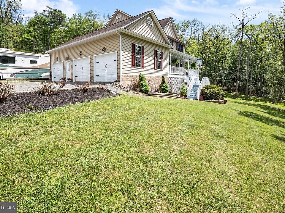 Spacious colonial with a great floorplan and over 2500sqft of living space, plus room to expand in the basement! Enjoy wildlife and winter mountain views from the covered front porch, and the privacy and peacefulness this property offers all while being situated within a growing community and only minutes to Winchester, VA. The main floor offers a spacious pantry, and great open-concept kitchen/living area with separate dining room and a main floor guest bedroom and bathroom. Upstairs you'll find a spacious owner's suite with beautiful ensuite, and 2 additional bedrooms and shared bath. Recently re-built rear deck, two large barns/outbuildings perfect for storage or a workshop. large, 3-bay garage. This home has something for everyone!