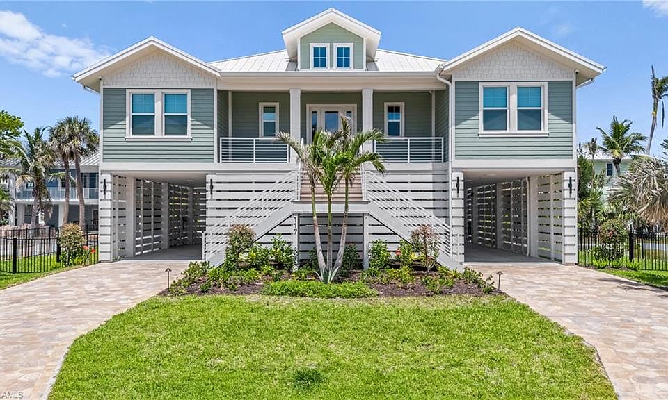 Luxury NEW CONSTRUCTION Home | Fort Myers Beach | Steps from the Gulf! Stunning NEW CONSTRUCTION coastal pool home by Gary Lau completed in 2025, located just 250 feet from the beach on the quiet and highly sought-after Hercules Drive. This ELEVATED three-bedroom, three-bathroom residence blends superior craftsmanship, elegant design, and effortless coastal living in one of the most desirable neighborhoods on Fort Myers Beach. Built with all-concrete and steel construction, this home is designed to last, featuring moisture, termite, and bug-resistant materials, an aluminum roof with no fasteners to replace, and maintenance-free stucco siding. The elevated structure includes a 10-foot clear lower level ideal for oversized vehicle or trailer storage and is elevator-ready with front porch clearance for future installation. Inside, the open-concept floor plan includes a spacious great room and an entertainer’s kitchen complete with custom cabinetry, quartz countertops, and top-tier stainless steel appliances. The living area flows seamlessly to a large covered balcony that overlooks the private pool and offers beautiful Gulf glimpses. High ceilings, abundant natural light, and coastal-inspired finishes create an airy and sophisticated ambiance throughout the home. Outdoor living is maximized with a screened-in, waterproofed lanai featuring integrated gutters, a covered front porch, and sunset-view balconies. The home is also prepped with hot and cold water hookups for optional outdoor showers in two locations. This peaceful, full-time-resident neighborhood offers tranquility with no short-term rentals. Enjoy being just a short stroll to beach access and a nearby fishing pier, perfect for morning casts or evening walks. Additional features include a home audio system installed in the main living and lanai areas, pre-wired for expansion to additional zones, as well as a security system with five cameras, DVR with remote access, and configurable alerts. An on-demand electric water heater ensures you’ll always have hot water when you need it. Whether you're looking for a permanent coastal residence or a luxurious beach retreat built for generations, this exceptional home offers unmatched quality, comfort, and location.