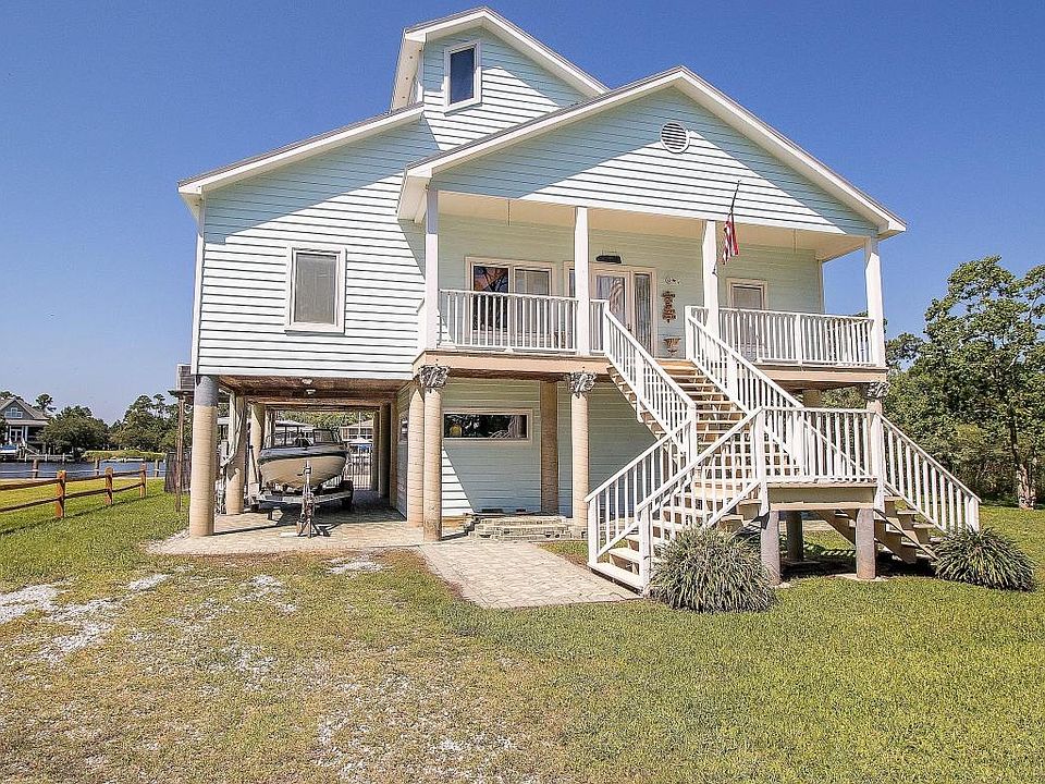 This one has it all. Very cool floor plan with hardwoods, 3 bedrooms plus a loft accessed by a walkway suspended from the ceiling of the great room. Super cool for kids and guests, sleeps many folks! Pool, boat ramp, both open and covered decks, on wide part of the Bayou, just a short run to the bay. The recreational options abound. Don't miss it.