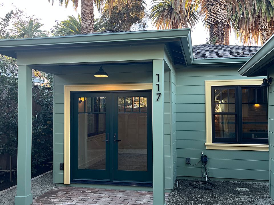 Step out French doors to your private courtyard perfect for an entertaining and bbq area. Espalier apple trees complement the European patio aesthetic. The yard for the ADU is fully fenced and secure and includes its own utilities and address.