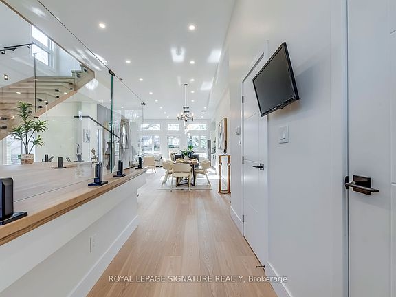 Welcome to a beautifully built modern detached home in the heart of East York. Thoughtfully designed from top to bottom, this 4+1 bedroom residence offers exceptional comfort, abundant natural light, and refined contemporary finishes throughout. Featuring 12-ft ceilings on the main floor, south-facing windows with abundant natural light, a sleek kitchen with full KitchenAid appliances, and custom cabinetry throughout. Each bedroom includes its own ensuite, plus a luxurious primary suite with a large custom walk-in closet and spa-like 5-pc bath. Upper-level family room offers flexible living space. Bright 9-ft basement with seperate entrance, full bath, large bedroom, and kitchen and laundry rough-in-ideal for in-law or income potential. Direct garage access. Steps to Stan Wadlow Park, Taylor Creek Trail, top-rated schools, the Danforth, transit, and minutes to the DVP and downtown. A perfect blend of modern design, functional layout, and an unbeatable location-117 Holborne Ave is a home that feels as good as it looks. Truly move-in ready and made for comfortable, connected living.