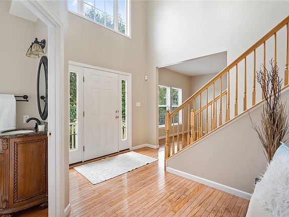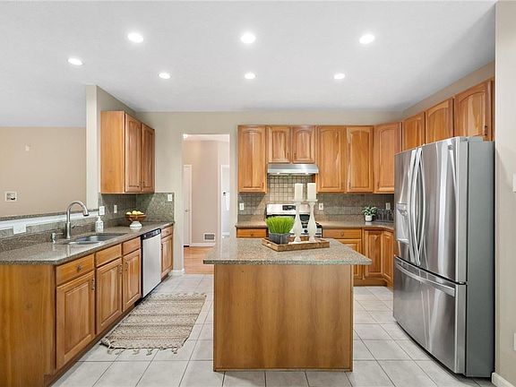 Large colonial situated in Hunters Run, Moon Twp. conveniently located near parks, Montour walking trail, The Mall at Robinson, restaurants and minutes to Downtown Pittsburgh and The Pittsburgh International Airport. Featuring 9Ft ceilings, 4 LRG BR'S, 3.5 BA'S, 2 STY foyer with HW floors through-out the first floor, a den off the foyer with french doors for privacy, formal LR & DR, great room has a wall of windows for lots of natural light, and a gas FP. The kit features cathedral cabinets, SS appliances, quartz counter tops, ceramic backsplash, kit island for additional storage and counter space, room for a table, 2nd floor features an owners suite and 2 WIC, 3 add'l spacious BR'S and a guest bath,LL is finished with a full bath separated from the garage entrance by french doors, large walk-in closet/mud room. The landscaping features maintenance free landscaping rock for easy care. Whole house surge protector, entire house was painted 6/22 And a private patio off the kitchen.