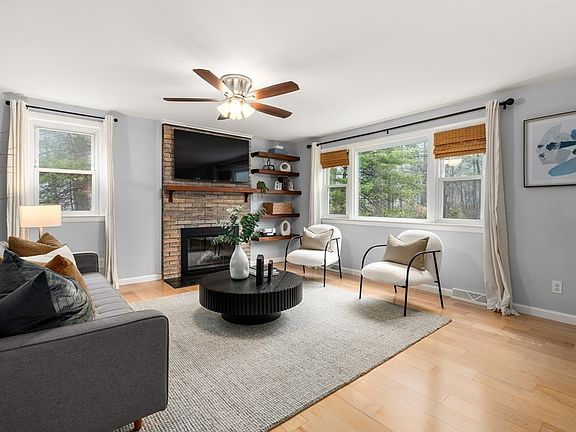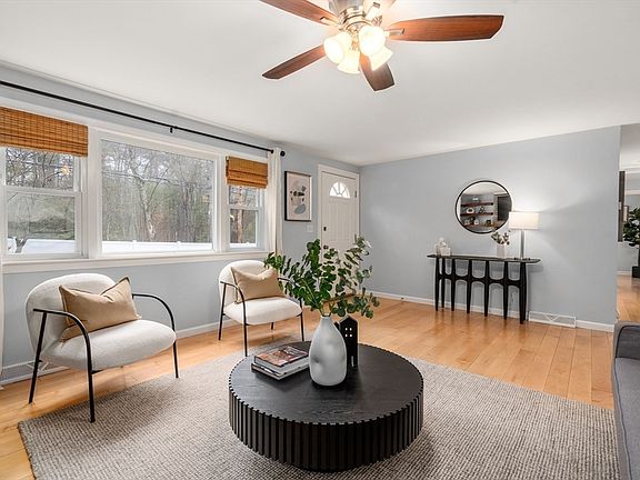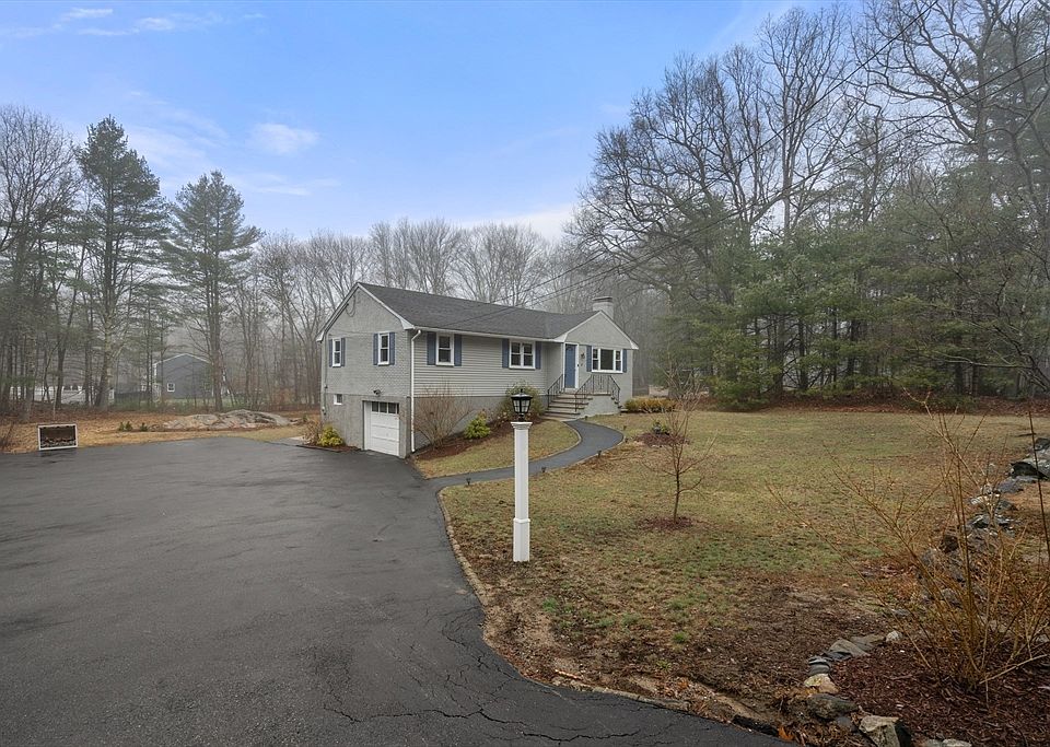 Nestled within Harold Parker State Forest, this home is a rare retreat into a breathtaking natural sanctuary. Explore 3,294 acres of preserved forest with over 50 miles of trails for hiking, biking, skiing, and horseback riding. 11 serene ponds to swim, fish, and boat, and 85 campsites ensure every adventurer leaves a happy camper. Over 100 vernal pools home rare New England wildlife, including blue-spotted salamanders, painted turtles, and fairy shrimp. Inside, thoughtful design provides warmth and everyday comfort. The main level features 3 bedrooms and a dual-entry bath en-suite to the primary bed and living area. An open kitchen and dining area lead to a wood-burning fireplaced living room where a view of the reserve is framed by a picture window. The attached garage connects to a spacious lower-level family room. Central air provides summer comfort. With easy access to downtown Boston, this home is an unexpected treasure: where nature and convenience exist in unmatched harmony.