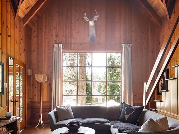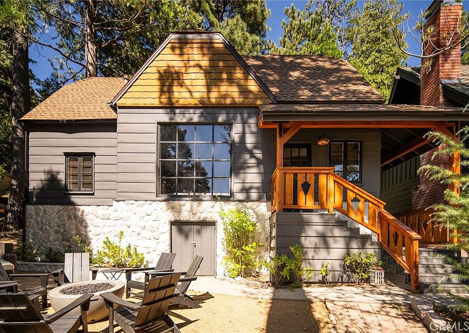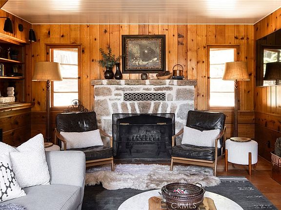 Timeless charm meets modern design in this beautifully remodeled mountain retreat, ideally situated just across the street from the lake in Lake Arrowhead’s sought-after Palisades neighborhood. Step inside to a warm and inviting main living space that blends vintage character with curated style. Floor-to-ceiling windows bring in natural light and frame views of the trees, while original wood-beamed ceilings and knotty pine paneling add cozy, mountain-lodge character. Two distinct seating areas provide room to relax or entertain, all anchored by a stunning original stone fireplace. The kitchen is both functional and full of personality, featuring playful two-tone green cabinetry, classic finishes, and a built-in dining nook with a farmhouse table. Indoor-outdoor access makes for effortless entertaining and easy flow between spaces—perfect for life in the mountains. Two beautifully remodeled bathrooms and cheerful, light-filled bedrooms offer comfort and charm in equal measure, creating a welcoming retreat for family, friends, or guests. Step outside to an expansive decomposed granite and stone patio, thoughtfully designed for outdoor living and entertaining. Multiple zones provide room to dine, lounge, and play—from casual meals under the trees to evenings around the fire pit or games in the open recreation space. A rare two-car garage adds valuable convenience.Whether you're looking for a full-time residence, a design-forward getaway, or a proven investment, 117 John Muir Road checks every box. The home also operates as a luxury short-term rental, offering strong income potential in one of Lake Arrowhead’s most desirable enclaves. Amenities also include Air Conditioning and a whole house generator.