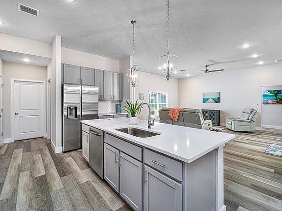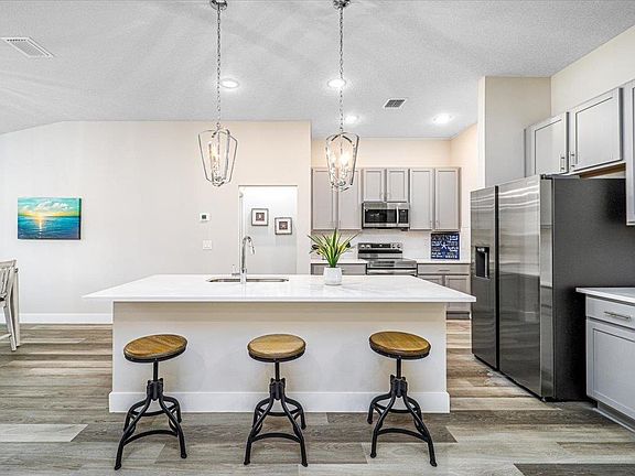 This brand-new home is waiting to welcome you! Luxurious details throughout the spacious 1721 square feet, with 10-foot ceilings, concrete block construction and no HOA fees. Every upgrade imaginable without all the cost! Fall in love the moment you step in with a stunning open floor plan with tile floors throughout (no carpets), plus a chef's kitchen with an oversized quartz countertop. Your entertainment dreams will come true! With plenty of storage, you'll have everything you need. The split floor plan provides bigger room sizes than most builders, and the covered patios in the front and rear yards are perfect for Florida living. With the beautiful quartz counters and tile backsplash in the kitchen, stainless steel range, microwave and dishwasher. The bathroom showers are tiled to the ceiling, and the quartz in kitchen and bathrooms. This is a must see! This spectacular home won't last long, so schedule a tour today and start living luxuriously!