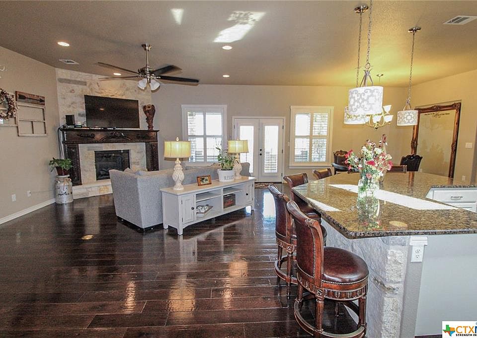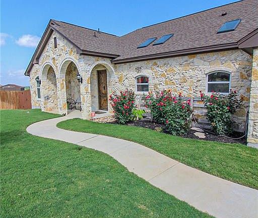 Gorgeous custom home in The Home Place at Jarrell. Open concept living space beautifully appointed w/ custom pieces, large kitchen, formal dining & family room. Custom real wood floors are throughout the home - zero carpet! Split bedrooms, spacious master bedroom w/ 2 closets, on-suite & safe room/storm shelter (6x6) .Over-sized laundry & outdoor fireplace. Large lot on thru cul-de-sac w/ great views!