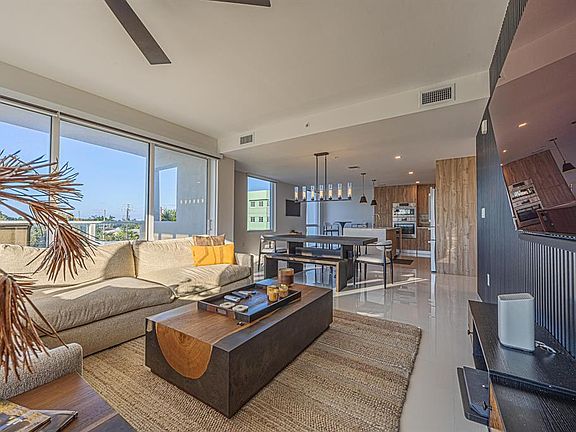 Modern and contemporary, fully furnished and turnkey, 2 bedroom 4th floor condo on Lake Ave in the heart of Lake Worth Beach. Surrounded by shops and restaurants, walk to the intracoastal waterway; one mile from Palm Beach oceanfront and 10 minutes to downtown West Palm Beach. Spacious and exquisitely furnished with wrap around balcony, open kitchen with large island, deluxe appliances. Breakfast bar with wine cooler, washer and dryer with deep sink. Primary bedroom has double sink and glass enclosed tub and shower. Guest bedroom has private ensuite bath with shower. Impact glass windows with remote control blinds throughout. Enjoy the rooftop pool, sun deck area. Two covered parking spaces in secure garage. Offered for annual rent or seasonal 6 month lease.