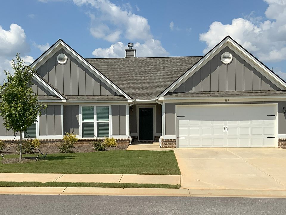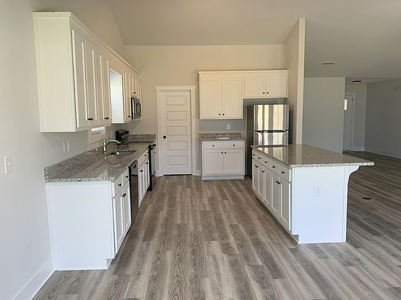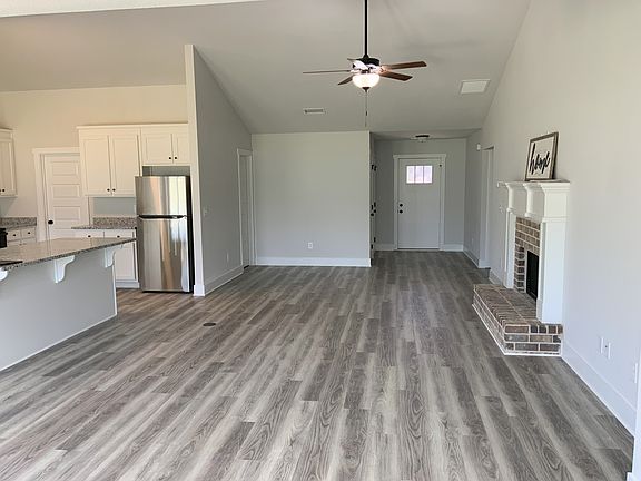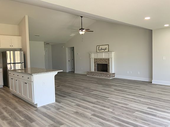 This brand-new ranch-style craftsman home offers 2,200 square feet of modern living space with a thoughtfully designed open concept layout. Featuring four bedrooms and one and two and a half bathrooms, the home provides ample space for family and guests. The spacious kitchen is a chef's dream, equipped with a large island with room for seating, solid surface countertops, and ample cabinet storage, seamlessly flowing into the living and dining areas. The living room is enhanced by a cozy fireplace and soaring vaulted ceilings, creating an inviting atmosphere.