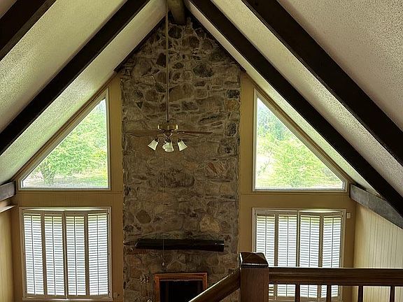 Pretty lodge style home nestled amongst the pines and lake. High ceiling in den, big back deck. A walk in tub, and a walk in shower. Dock to fish from. Home and dock needs some work, but could be real showcase! Has invisible fence with 3 shock collars. I have a property inspection report that I can share. Yearly dues for Lake insurance runs about $360. $200 to $300 per year for water/well use. Schedule to see this pretty home on 5 acres.