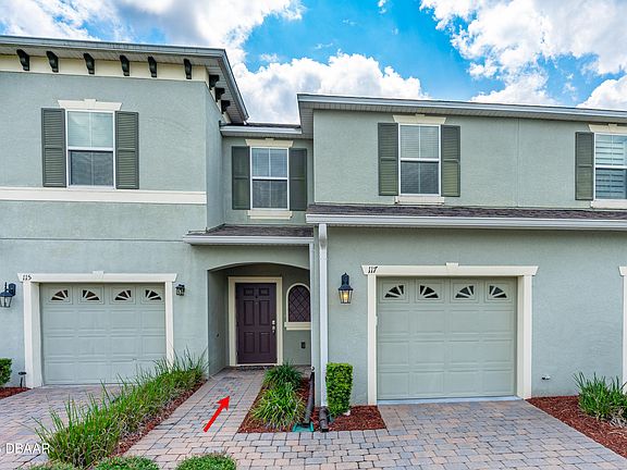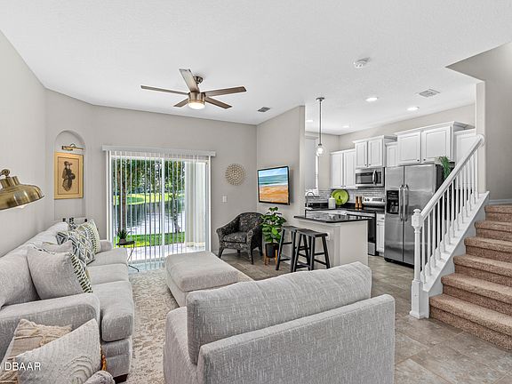 Welcome home to this beautiful 3 bedroom, 2.5 bathroom townhome offering serene lakefront. The first floor features a light and bright open-concept living and dining area, with a convenient half bath entertaining, and beautiful 18'' tile floors. The kitchen offers white shaker cabinets, stainless steel appliances, granite counters, tile backsplash and bar top seating...Great for entertaining! Upstairs, the primary suite boasts a private en-suite bathroom and stunning lake views, creating a peaceful retreat. Two additional bedrooms and a full bath provide plenty of space for family or guests. Enjoy the best of outdoor living with a private patio overlooking the lake, perfect for morning coffee or evening sunsets. Located in the desirable LPGA Grande Champion community, close to shopping and dining. This townhome blends comfort, convenience, and natural beauty. All info intended to be accurate but can't be guaranteed