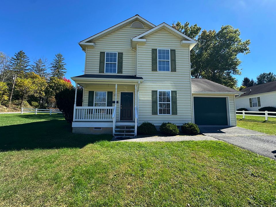 Showings begin Thursday October 23, 2025. Ideally located within walking distance of downtown Lewisburg, this two-story home offers comfort, convenience, and low-maintenance living. A covered front porch provides a welcoming entry, leading to a spacious main level that includes a comfortable living area, formal dining room, and a well-planned kitchen featuring a peninsula, ample storage, and a pantry closet. The breakfast area is perfect for casual meals, and the laundry room and half bath add everyday functionality. Upstairs, the primary bedroom includes an ensuite bathroom, along with two additional bedrooms and a full bath. Situated on a nice, level corner lot with a small back patio, one-car garage, and paved driveway, the home also features maintenance-free vinyl siding, central air conditioning, and natural gas heat; making it an excellent choice for easy living close to everything downtown Lewisburg has to offer.