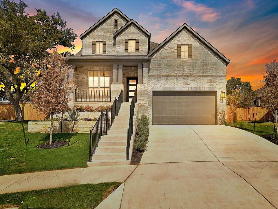 Beautiful 2-story home on a cul-de-sac. The home features 4 bedrooms, 3 bathrooms and 2 powder rooms, study downstairs and entertainment room upstairs. Upgrades include a freestanding tub in the Primary Suite, gourmet kitchen with GE Cafe appliances, family room has sliding glass doors opening onto an extended outdoor living space. This home is in the Leander ISD