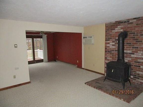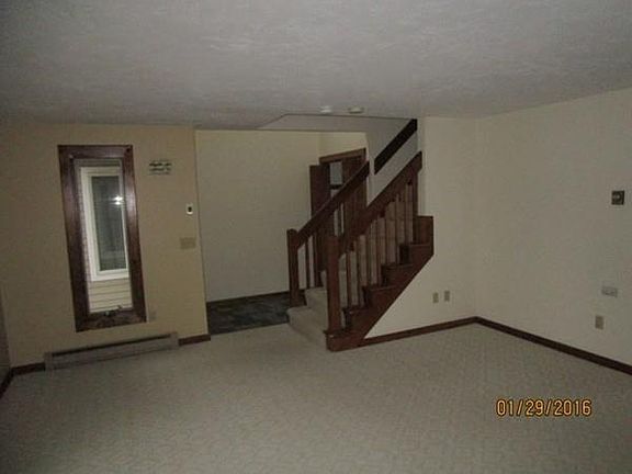 Well maintained townhouse on lovely lot with natural stone walls in small, 6 unit community! Spacious and open floor plan with natural lighting! Living room with large windows to bring in the light and wood burning stove! Cabinet packed kitchen. Dining room features sliding glass doors to the updated deck, perfect for BBQs! 1st floor half bath. Two generous size bedrooms with plenty of closet space. All new carpet and fresh interior paint! Full Bathroom with skylight over shower! 1 Car Garage with 2 Deeded parking spots! Recent brick walkway with granite steps. Attic and basement add more storage! Close to routes 290 & 495, schools and shopping!