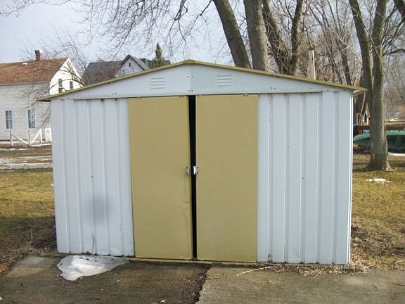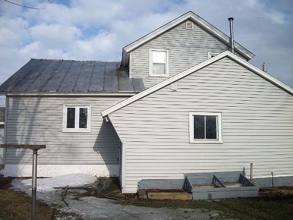 Exterior Features:Tin and shingle roof in fair shape. Vinyl siding. Wood and aluminum windows. Detached two car garage. Shed.Interior Features:This is a 3 bedroom 1.5 bath house with 1600 sq ft. Carpet and hardwood flooring throughout house. Vinyl flooring in the kitchen and both bathrooms. Kitchen has refrigerator, dishwasher and dryer. Gas water heater and gas furnace are present. Plumbing and wiring is intact. Drywall walls are in good condition. Light fixtures are intact.