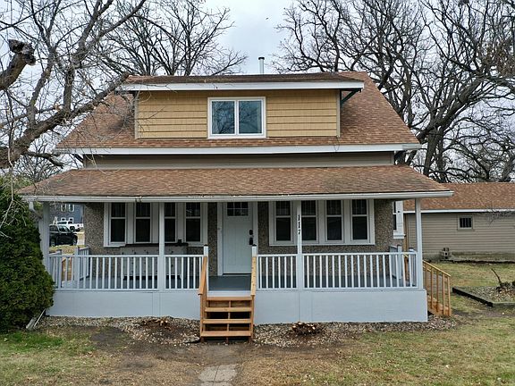 This 4 bedroom, 3 bathroom charmer has been tastefully updated to fit its era! Located on a corner lot in thriving New London this beautiful home is just blocks from New London-Spicer schools, great shopping, biking trails, great restaurants and entertainment! You're welcomed with a large front porch. Inside on the main level you'll find your front living area, stunning dining/kitchen area with breakfast bar, sink and light fixtures matching the character of the home, your primary bedroom and attached full bath! Upstairs is another living area, and 3 unique bedrooms - one with 3/4 bath, and one with a walkout deck and sink.