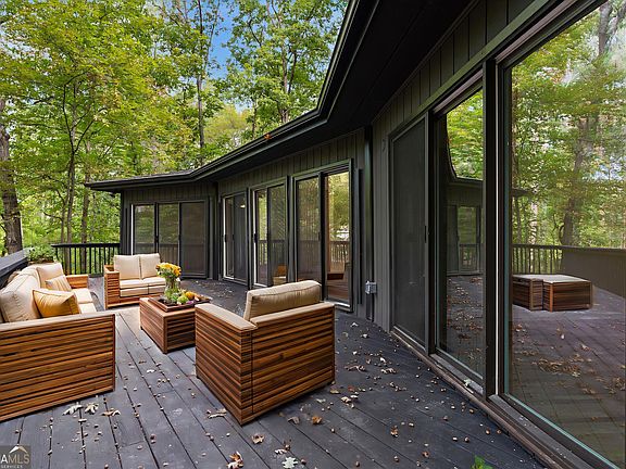 Fantastic Opportunity to Own this Fully Renovated Ranch Home in the Gated Lake Arrowhead Community! Situated on an oversized wooded lot at the end of a peaceful cul-de-sac, your dream retreat in the woods is here! With a new roof, new flooring, new fixtures, and custom upscale features throughout, enjoy two beautifully finished levels of living designed for relaxation and easy entertaining. The main level features light-filled, open concept living with an easy flow from the oversized living room with wood-beamed vaulted ceiling and stacked stone fireplace, dining area, and designer kitchen with white cabinets, quartz counters, breakfast bar island with storage, porcelain farm sink, microwave drawer, and special touches throughout! The kitchen also provides access to the back deck, overlooking the fenced and wooded back yard, perfect for watching the surrounding wildlife. The split bedroom floor plan includes the primary suite with dual quartz vanities and custom frameless shower, and a second bedroom with ensuite bath, both with stunning views of the lush grounds. The fabulously finished walkout terrace level features a large family room with a second stone fireplace and convenient wet bar. This level also includes a guest room and a full private bath. Step outside to the expansive front deck that runs the length of the home! The Lake Arrowhead community offers excellent amenities and no rental restrictions. Schedule your private showing today!
