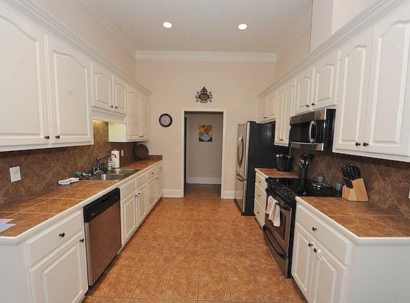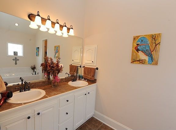 WATERFRONT home within walking distance of the the neighborhood pool! Split bedroom plan, hardwood flooring, stainless appliances, screened porch to sit and enjoy the water views, open patio also! Fully fenced backyard and great landscaping. Surround sound remains and the TV cabinet in the den can remain if buyer wants it since it fits so perfectly! 2 walk in closets in the master bedroom!