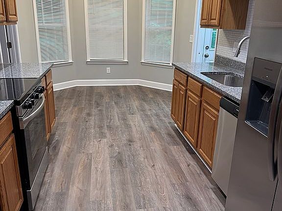 Recent renovations include a new roof, new flooring, new kitchen appliances, granite countertops, and fresh interior paint, giving the home a modern and inviting feel. Natural light fills the open living spaces, and the functional layout includes a laundry area conveniently located just off the kitchen.