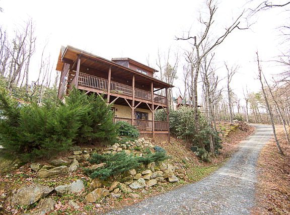 Nestled in the woods near the Blue Ridge Parkway between Boone and Blowing Rock at an elevation of 3500 ft with a private, usable yard and multiple deck space to enjoy the great outdoors,this well-maintained, Cedar log cabin stands out from the rest. With hardwoods throughout the living area, a floor to ceiling stone fireplace, vaulted ceilings, custom whole log ceiling beams, stairway posts and railing, wide-plank tongue and groove ceilings, poured cement kitchen countertops, rough-cut vanity surfaces, and specialty lighting and fixtures, this cabin joins rustic charm with modern elegance.