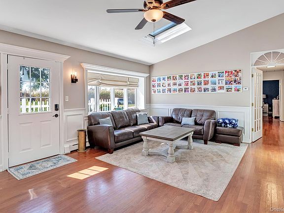 Exquisite 1890 waterfront ranch nestled on over half an acre of lush, beautifully landscaped grounds, this stunning 3-bedroom, 2-bathroom home blends the charm of its 1890 origins with luxurious modern updates. Enjoy the tranquility of sea breezes and the ease of single-level living in a home designed for both relaxation and entertaining. Step inside to a spacious living room featuring vaulted ceilings, skylights, and abundant natural light, creating an airy and inviting ambiance. The gourmet kitchen boasts a large island with granite countertops, stainless steel appliances, and ample cabinetry—perfect for any home chef. Both bathrooms have been completely renovated with sleek, modern finishes, offering spa-like comfort. Each of the three bedrooms provides cozy retreat spaces, with hardwood floors throughout. Outside, enjoy expansive patios and updated docking both ideal for hosting or soaking in the serene surroundings. Plenty of room for your boat and Jet-Ski on the Grand Canal which leads to the popular Connetquot River and Great South Bay. A detached 2-car garage offers plenty of storage, while the property's generous dead-end lot gives you privacy, space, and the beauty of nature just steps from your door. Part of the original Vanderbilt Estate, this semi attached home is a rare opportunity to own a piece of history, perfectly updated for modern living—all on the water.