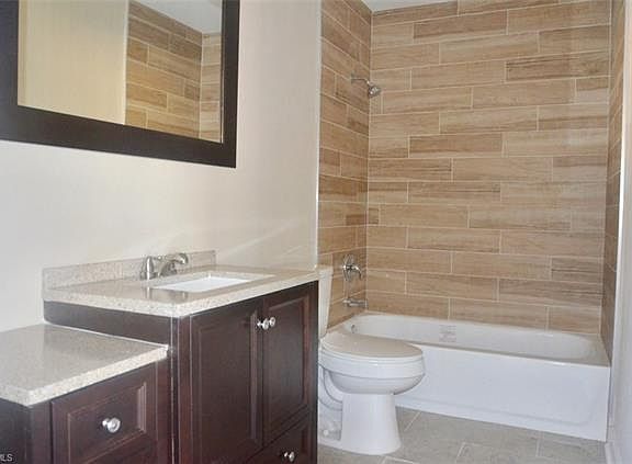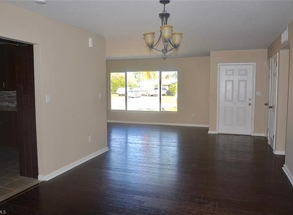 Don't miss the opportunity to own this beautifully remodeled 3 bedroom 2 bath home located in the heart of Lehigh Acres that offers the convenience of city water/sewer. This home has 1824 sq ft of living space, large living room, dining area, and huge bonus room. The living area flooring has been upgraded to an expresso wood like laminate flooring. The flooring in the wet areas has new 12"x24" brick laid tile. All of the bedrooms and bonus room have brand new carpet. The kitchen has new granite countertops, brushed nickel hardware, stainless steel appliances, gorgeous stone back splash, and a large pantry cabinet was added for storage. The guest bath has new expresso shaker style vanity with custom mirror, new tub and fixtures, and stunning wood like tile surrounding tub. Other interior upgrades include new: light fixtures and fans, hot water heater, doors and trim, upgraded door hardware, upgraded vanity and mirror in master bath, and all outlets and light switches have been replaced. The exterior of the home has been painted a beautiful taupe color and accented with a off white trim to tie in with new landscaping and upgraded windows. Contact your agent today to schedule showing!