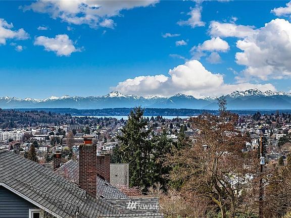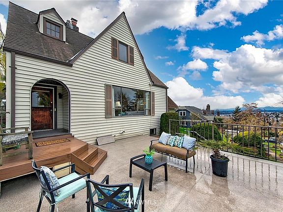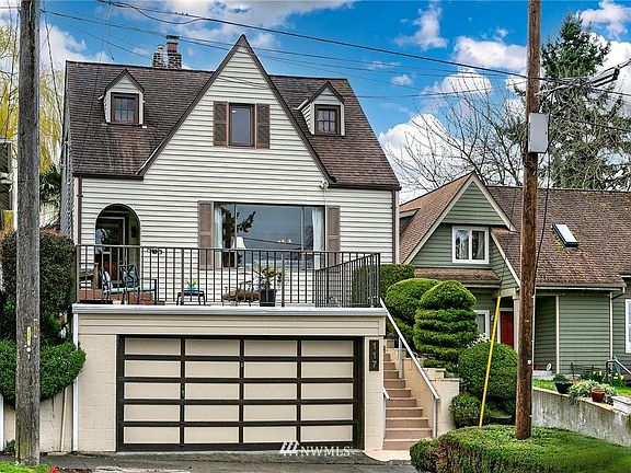 Lovely Phinney Tudor w/breathtaking views of Sound & snow-capped Olympic Mountains! Large home awaiting your finishing touches but is solid. Living room w/beautiful views, hardwoods, high ceilings & fireplace. Formal dining room & updated kitchen w/granite counters, some updated appliances & sunny eating space. 2 bedrooms on main & bathroom w/tub. Upstairs features primary bedroom w/views, fir floors, walk-in closet & office/sitting area w/potential for a Suite. Lower level: A bedroom, bath, family room & workshop. 400+sqft garage w/recently resurfaced view deck above! Private, southern-facing backyard, perfect for a DADU? (Buyer to verify). Off Street Parking! New 200-amp electrical service. Quiet street; walk to zoo & shops! True gem!