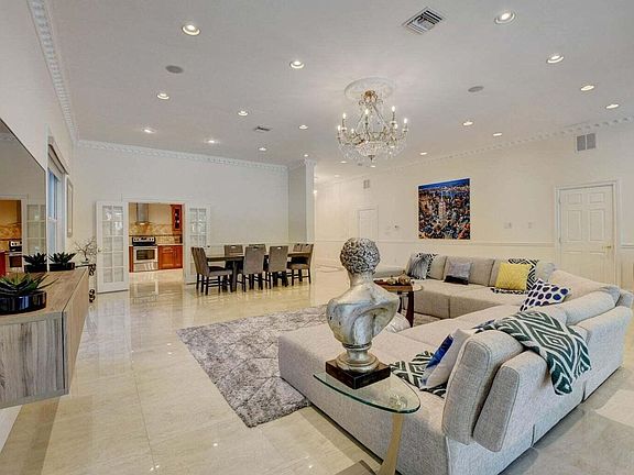 COURTESY OF Ocean Glades Realty Group Discover this one-of-a-kind, fully furnished resort-style home in East Boca Ratonan exceptional custom rebuild on an oversized lot featuring 6 bedrooms and 4 full baths, including two primary suites on the main level and a loft upstairs. Designed for comfort and sophistication, the home showcases 11-foot ceilings, LED lighting, impact windows, a heated pool and spa, and a spacious covered patio surrounded by lush Eureka Palms for ultimate privacy. Modern upgrades include PVC plumbing, a new kitchen water filtration system, iPhone-enabled security cameras, central vacuum, and a 3-zone A/C system. The solid block and concrete construction ensure quality and durability throughout. Perfect for both relaxation and entertaining, this residence offers the feel of a private resort with every convenience close at hand. Minutes from the beach, downtown Boca, Mizner Park, restaurants, shops, and major highways. Available for annual or seasonal rental; garage not included.