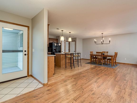 Center islandNew front entry doorPrimary suiteLight fixturesQuartz countertops in kitchenPrivate patio