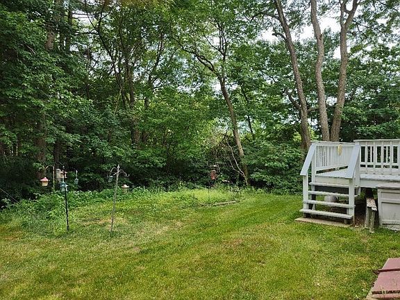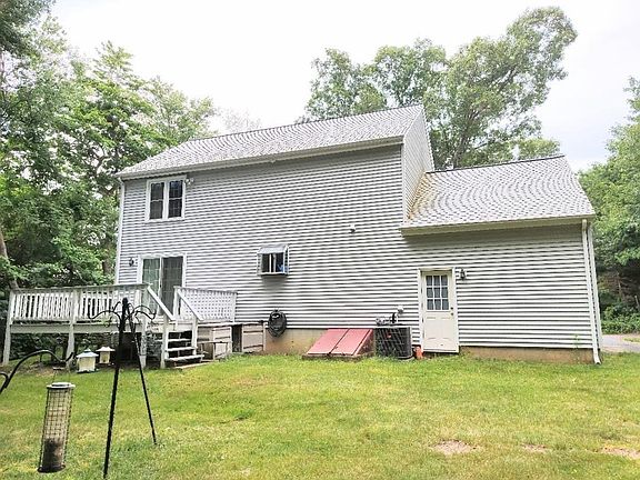 Lovely 3 bedroom Colonial located across the street from a wonderful park/playground! This home is surrounded by woods giving you quite a bit of privacy! Features include a large, front-to-back living room with sliders to your private rear deck, a large kitchen, a beautiful dining room w/ hardwood flooring, first-floor laundry and a huge master bedroom with a spacious walk-in closet! There is a one-car garage w/ opener and plenty of room for storage and a generator hook-up! The front door, rear door and slider were replaced earlier this year. Most of the windows in the home have been replaced as well! The furnace and oil take have also been replaced. Move right in and update to your own personal taste!